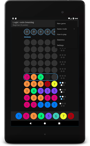 You can adjust the difficulty of the game in Settings by changing the number of rows, columns and colors to find a suitable level for novices and experts alike.