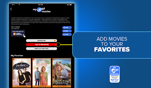 Never miss an UPtv movie! With the My UPtv Movies app, you can learn more about upcoming movies, watch previews, and request personalized showtime alerts. Add your favorite movie titles to a personal collection to easily access them later, set calendar reminders, and request notifications. Whether you’re looking for romantic movies with stars that shine, Christmas movies, UPtv Premiere Movie events…or just want to binge weekend movies that move you… fall in love with our movies and the My UPtv Movies app!