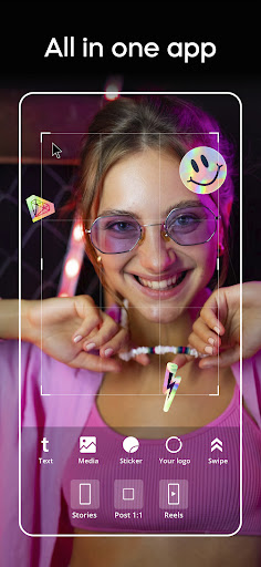 Instories provides standard (16:9), square (1:1), post (4:5) and Reels format specifically for Insta. The editor options will help you style your social media feed in neon color or enhance the page with a different style, as if it were done by a professional.