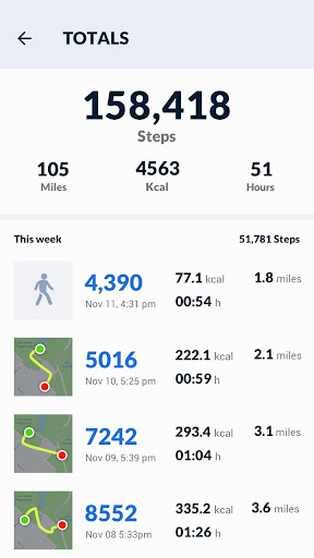 This pedometer uses the built-in sensor to count your steps. No GPS tracking, so it can greatly save battery. It also tracks your burned calories, walking distance and time, etc. All this information will be clearly displayed in graphs.